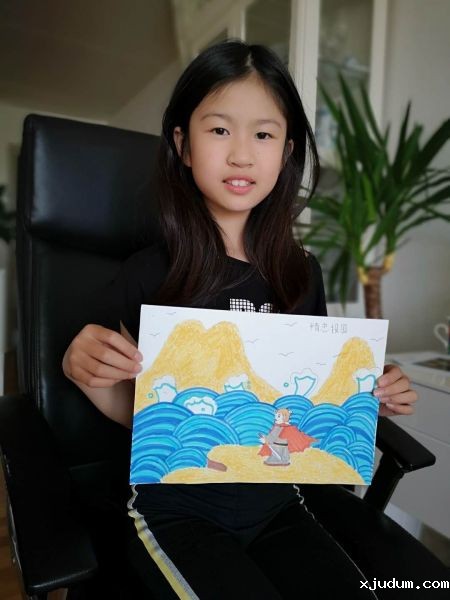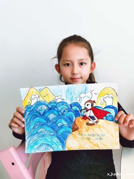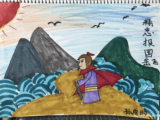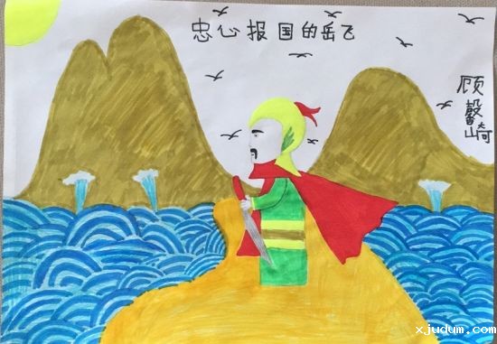 内景老师焦晓介绍了岳飞的生平、岳飞与秦桧之间的故事以及岳母刺字的典故,并解析了“岳”字的内涵。学生们在老师的指导下,完成了手工作品——“卡通岳飞”。