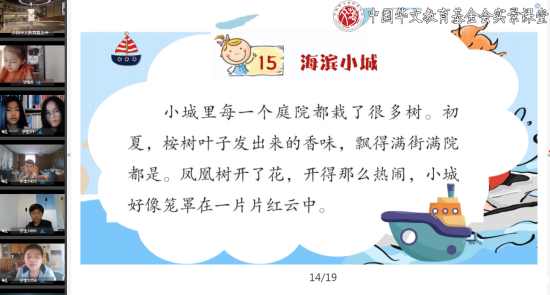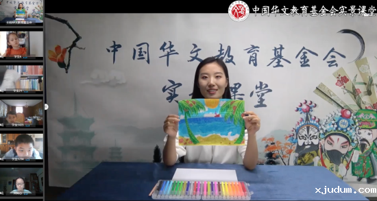 内景老师毋典介绍了海滨城市的概况,带领大家学习《华文》第十一册第十五课《海滨小城》,通过对课文的讲解与分析,学生们了解了这座海滨城市的独特风光以及居民的生活方式。大家还和内景老师一起完成了简笔画作品“海滨小城”。