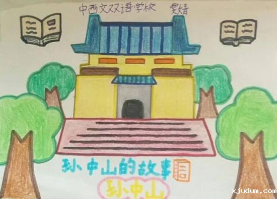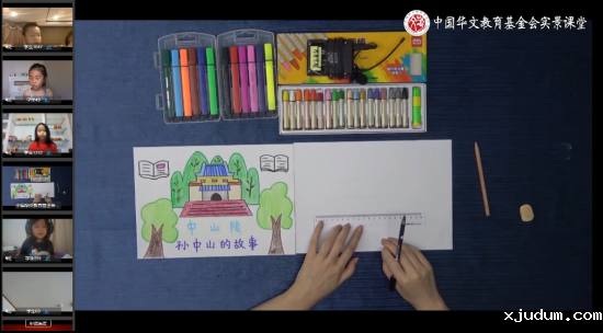 内景老师朱晨光介绍了孙中山先生的生平事迹,带领学生们学习《中文》第七册第十课《孙中山的故事》。通过对课文的朗读和分析,学生们了解到孙中山先生在英国留学期间的故事,对其尽管生活艰苦,但依旧热爱读书的精神印象深刻。学生们在内景老师的指导下,完成了简笔画作品“中山陵”。在南京孙中山纪念馆,外景老师焦晓向学生们介绍了孙中山先生过往的生活经历以及他与中山装的渊源。