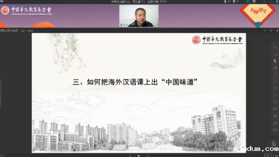 北京第二外国语学院于淼教授讲授的《中国文化教什么》主题课程,围绕着如何把海外汉语课讲出“中国味道”、文化教学新视角以及了解中国与中国故事等方面进行授课。