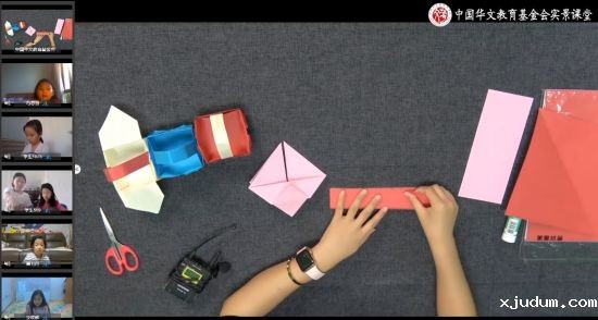 内景老师尚洁介绍了华佗的生平,分享了两则华佗行医的典故,学生们从中了解到华佗高超的医术及其悬壶济世、救死扶伤的精神。同时,内景老师还介绍了华佗首创麻沸散和外科手术等医学成就,并与学生们一起完成了手工作品——“折纸花篮”。