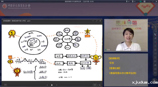 北京时间6月26日,教育学博士、博赞思维导图全球认证讲师、《早该这样用思维导图》作者任洁通过优米app苹果下载“名师讲堂”全球直播平台,为数十个国家和地区的华文教师带来直播课程《思维导图与华文教学应用》。