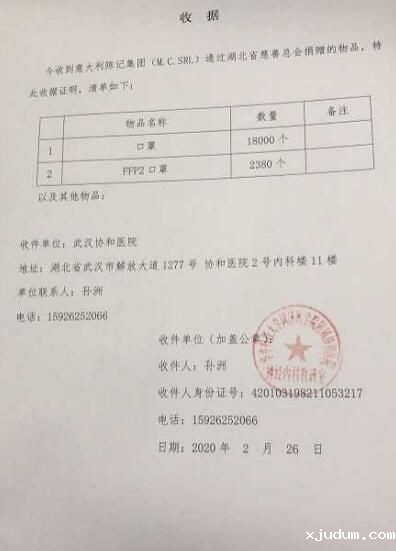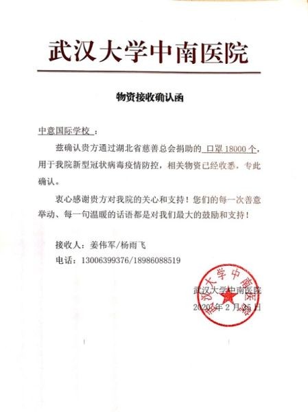 近日,优米app苹果下载将意大利中意国际学校和金龙学校共同募集捐献的131018.74元人民币拨付至武汉金银潭医院,同时,该校捐赠的18000个医用口罩,以及由该校协助意大利陈记集团捐赠的18000个医用口罩、2380个FFP2口罩,协助威尼斯华人志愿者捐赠的950件防护服,已运抵武汉大学中南医院、金银潭医院等5家医疗机构。