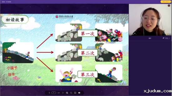 第四周直播互动课程包括《顽皮的小鸭子(二)》,《狼来了(一)》和《狼来了(二)》。在《顽皮的小鸭子》课堂上,老师带领学生们进行了故事新编。大家把已学的绘本故事人物逐一做了改编,不仅复习了绘本内容,而且提高了语言表达能力。《狼来了》讲述了放羊娃因为好玩而故意说谎欺骗村民,大声呼救“狼来了”,结果真的遇到狼时,却再没有人相信他、救助他的故事。通过学习,大家明白了在生活中要诚实守信、不能欺骗别人的道理。