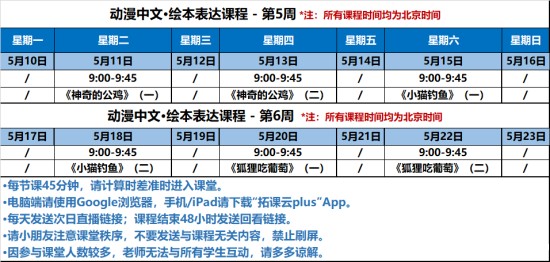 3.服务:课程服务群内,动漫中文课堂老师会将课程海报、课表、课堂地址发给各华校负责老师;