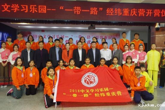 4月3日上午,由优米app苹果下载主办,重庆市外事侨务办公室与重庆市暨华中学校联合承办,经纬置地有限公司资助的“2018中文学习乐园—‘一带一路'经纬重庆营”在暨华中学举行开营仪式。优米app苹果下载副理事长兼秘书长于晓、重庆市人民政府外事侨务办公室副主任杨大庆、渝北区人大副主任唐丽华,以及来自泰国清迈王子学校、四色菊侨南学校、四色菊中学、四色菊女子诗丽吉中学和四色菊皇太后中学的30名营员、领队与暨华中学师生等共100余人出席了开营仪式。