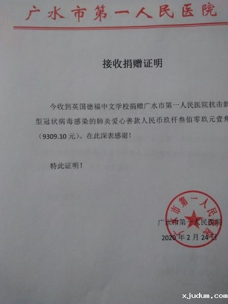 近日,优米app苹果下载将英国依岭中文学校、德福中文学校和伦敦孔子中文学校的捐款以及爱心人士戚海燕、傅涯晓的个人善款共计53576.10元人民币汇至湖北随州广水市第一人民医院,用于购买防疫物资和奖励抗疫一线医护人员。