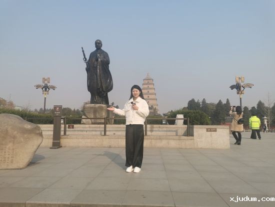 位于陕西省西安市大雁塔广场的外景老师焦晓,通过镜头带领学生们感受大雁塔这座唐代楼阁式古塔的魅力,在其周边还可以看到一座僧人雕像,他就是大雁塔的主持修建者,也是中国四大名著《西游记》中唐僧的原型——玄奘。焦晓老师将“大雁塔”与“玄奘”的故事娓娓道来,还与学生们一同欣赏了唐代诗人岑参称赞大雁塔的诗词,让大家对中国古代塔式建筑有了进一步的理解。