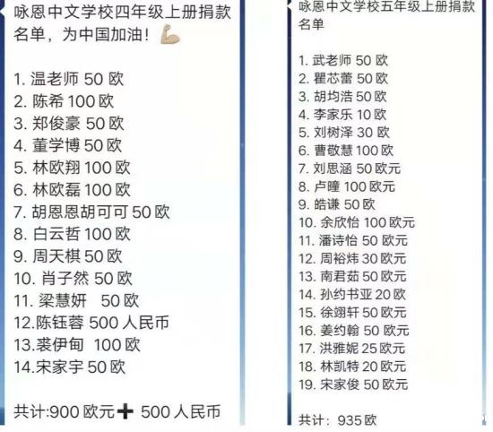 1月27日,意大利那不勒斯咏恩中文学校校长曹勇亲手制作“募捐倡议书”,发到学校的各个班级群。在父母的引导下,孩子们纷纷拿出平时积攒的零花钱、压岁钱献爱心,短时间内就募集了21309欧元(合计人民币162708.57元)。