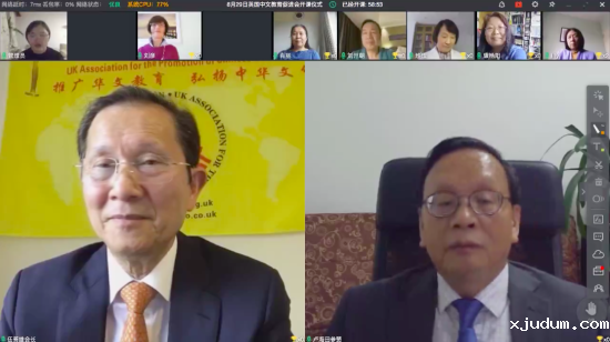 卢海田参赞对英国中文教育促进会多年来在英开展中文教育所作贡献予以肯定和感谢,并强调在新的形势下,应更好地运用网络开展教学,使华文教育事业突破时间、空间的限制持续发展。