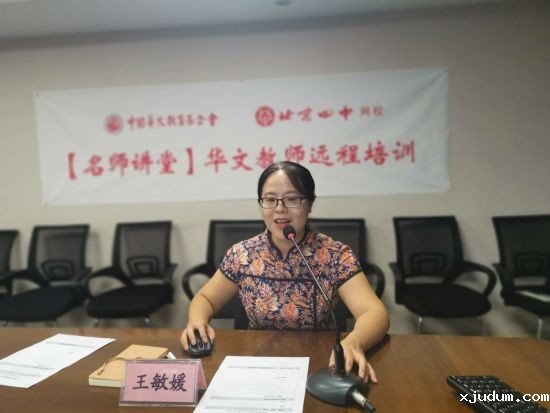 本次开课仪式的互动课,由挪威王国驻华大使馆汉语教师王敏媛带来的《网课的问题与解决办法》。王敏媛老师从学生在网络课堂中的情感需求、决定网课效果的因素等角度出发,通过实际举例的方式,讲解怎么让网络课堂达到高效的目的、怎样让学生愿意参与、怎样让学生愿意互动等问题。